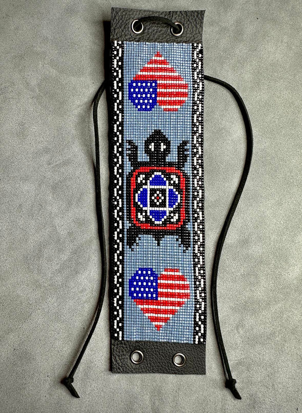 M-0005 - Mohegan Turtle with Heart Shaped American Flags and Trail of Life Cuff